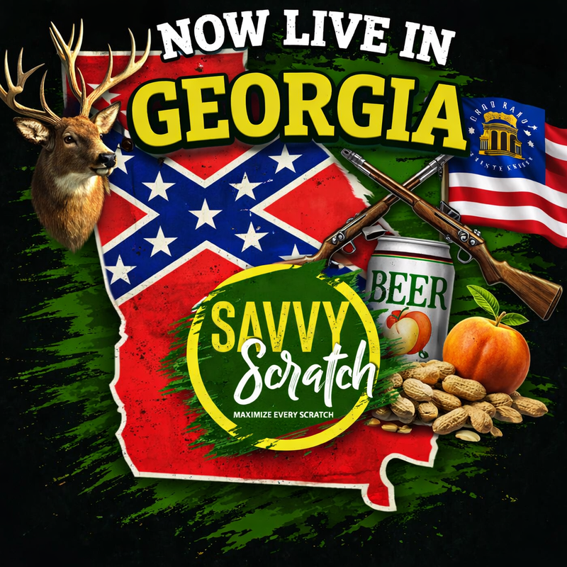 Georgia is the 18th state on Savvy Scratch, joining Arizona, California, Florida, Illinois, Louisiana, Maryland, Massachusetts, Michigan, Missouri, New York, North Carolina, Ohio, Oklahoma, Oregon, Texas, Virginia, and Washington. Every new state matters because every new state means more players get access to real data instead of guesswork.