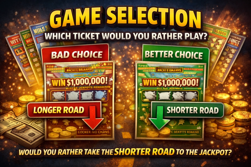 The useful question, the one the beginner's guide to lottery jackpot hunting spends time on, is shorter road or longer road. Out of the games I could buy right now, at the price point I have in mind, which one puts me closest to the outcome I actually care about. That is game selection. That is what an advantage player is doing when they stand in front of the counter longer than the clerk expects.