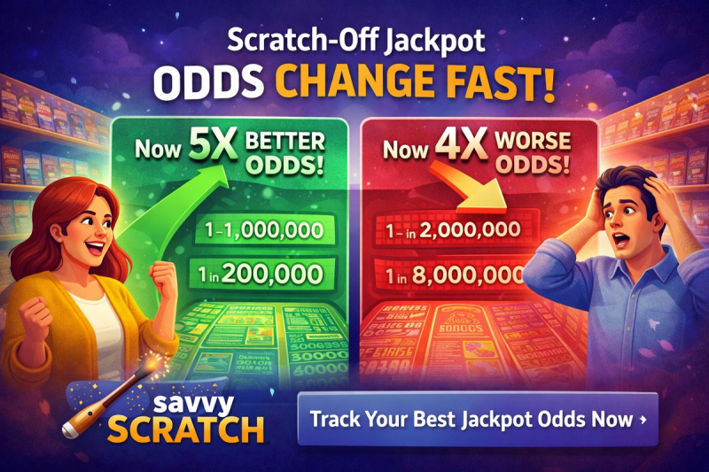 Most players can't track this themselves. SavvyScratch does it automatically - pulls data from state lottery websites, calculates jackpot odds for every active game, shows you which ones have your best shot at hitting big.